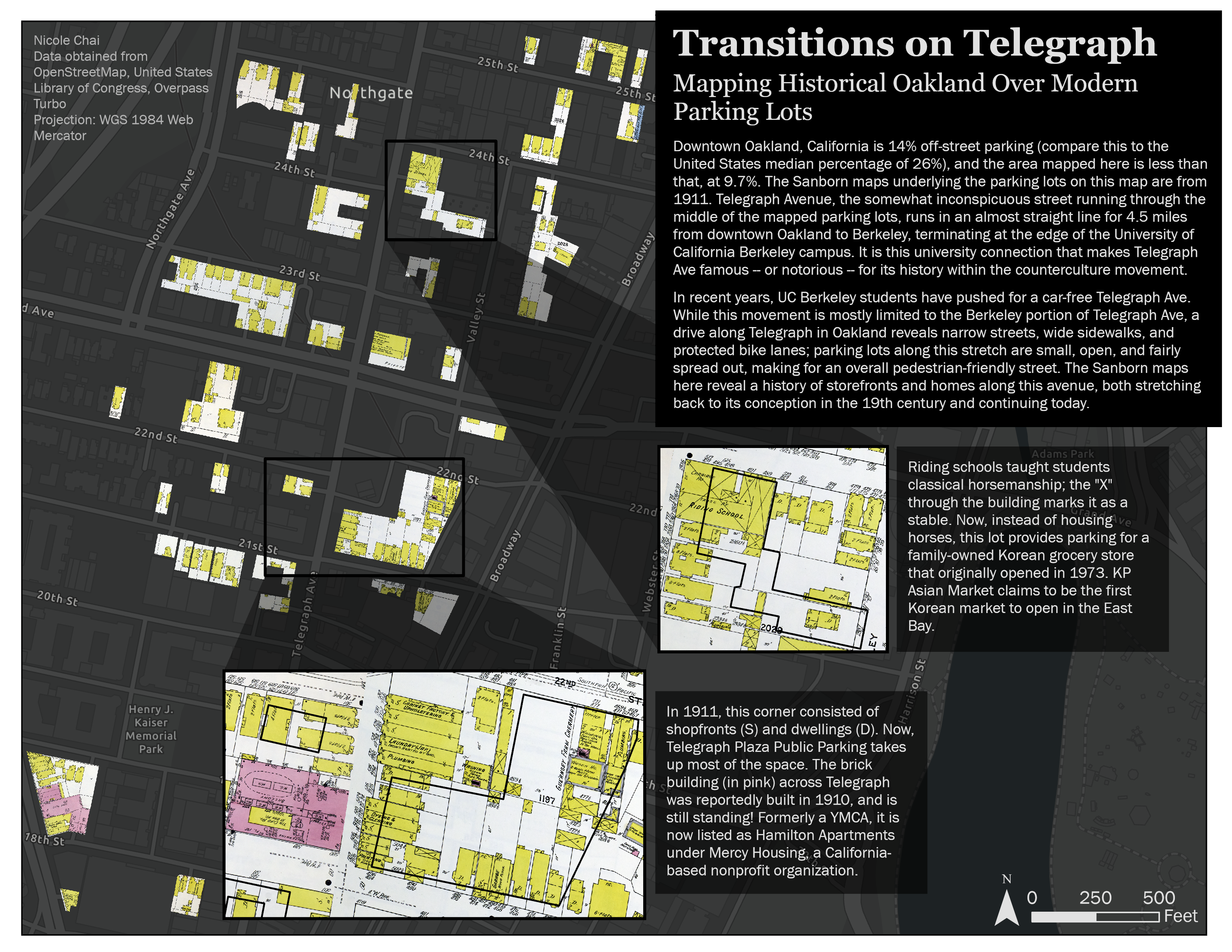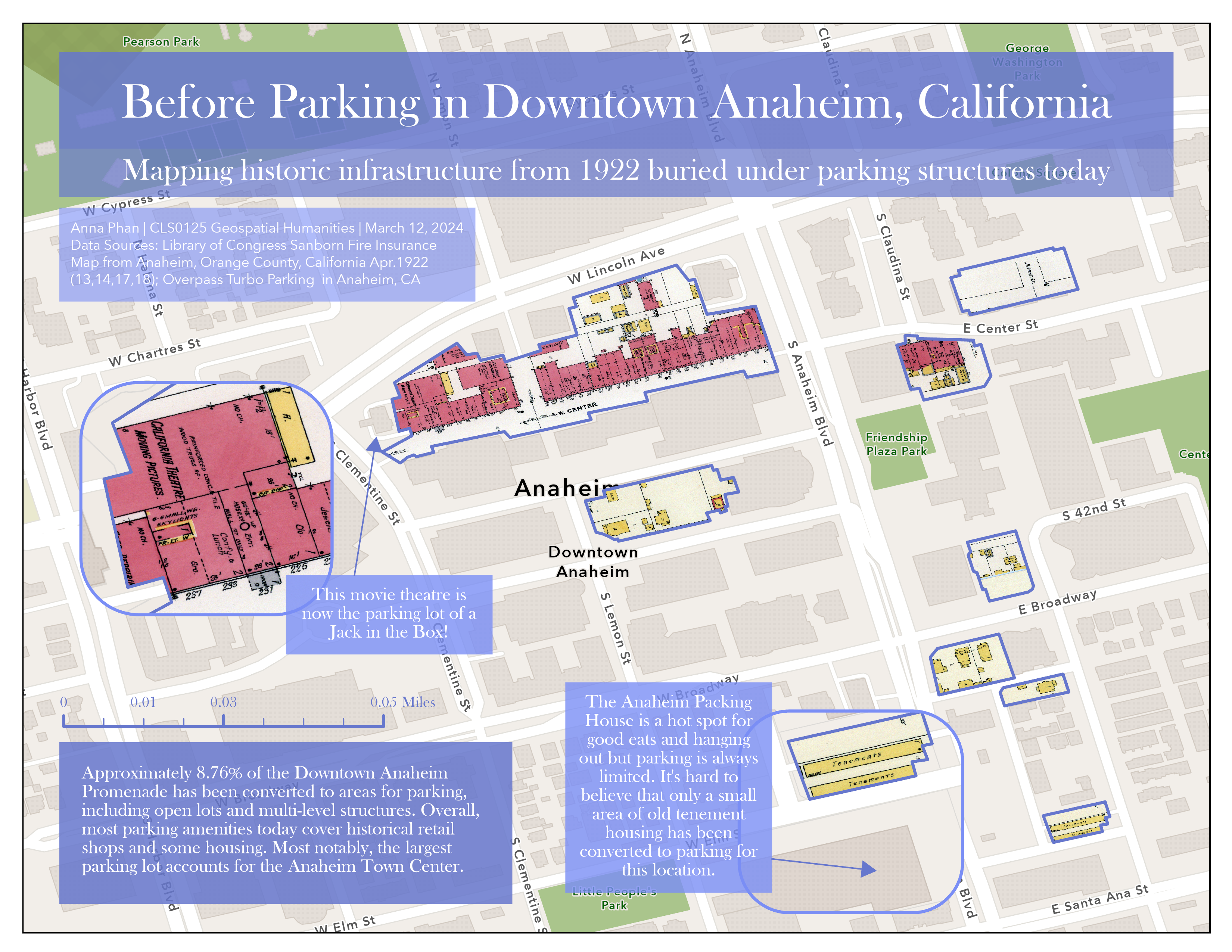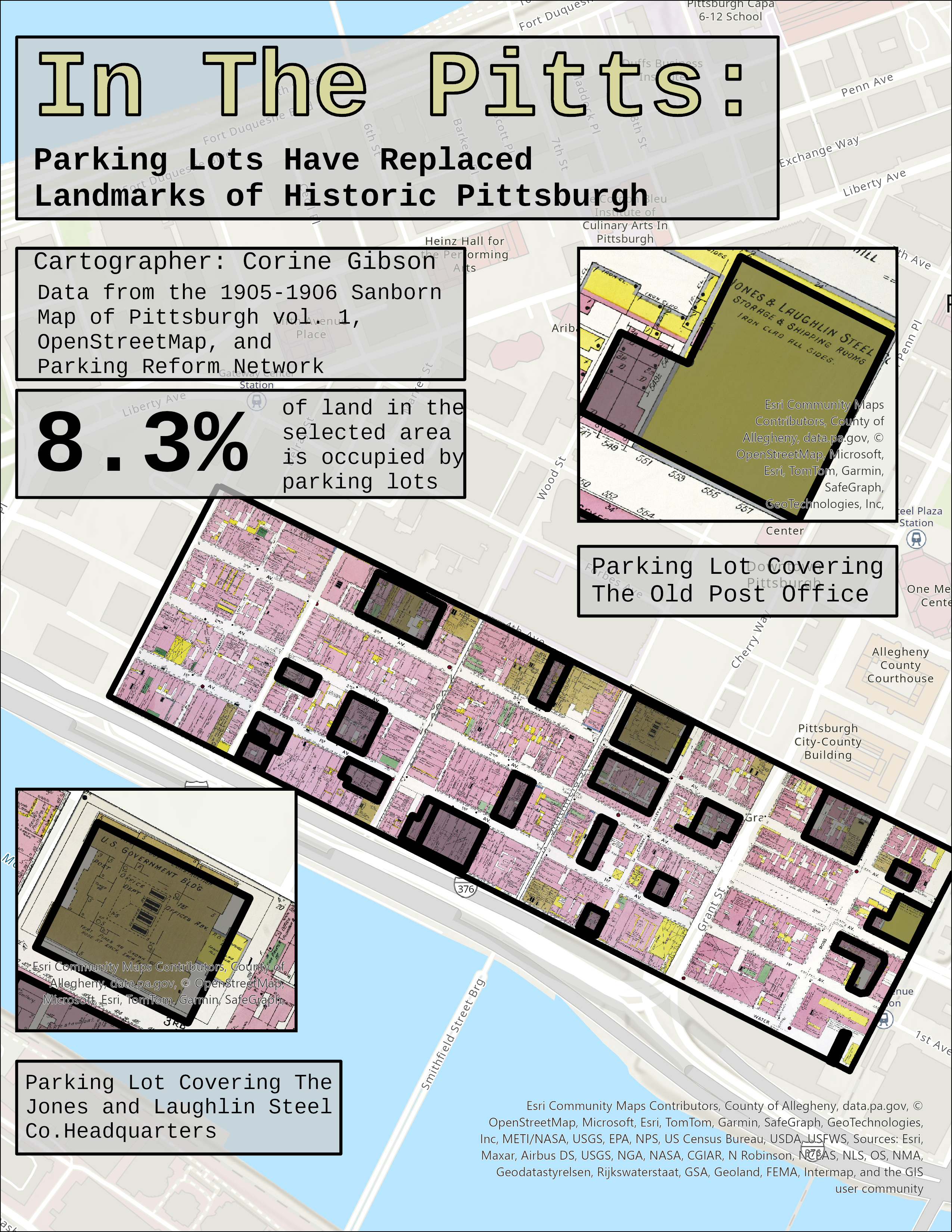 In this assignment, you’ll become—in the parlance of The Bard—a “grave-maker.” Using historic fire insurance and tax atlases, you will make a map of “parking lot cemeteries”—that is, a map of what used to inhabit contemporary parking lots. In ArcGIS Pro, you’ll georeference a few maps from an atlas of your choice, ultimately producing a visualization of what kinds of social and geographic features predated parking lots in the landscape.