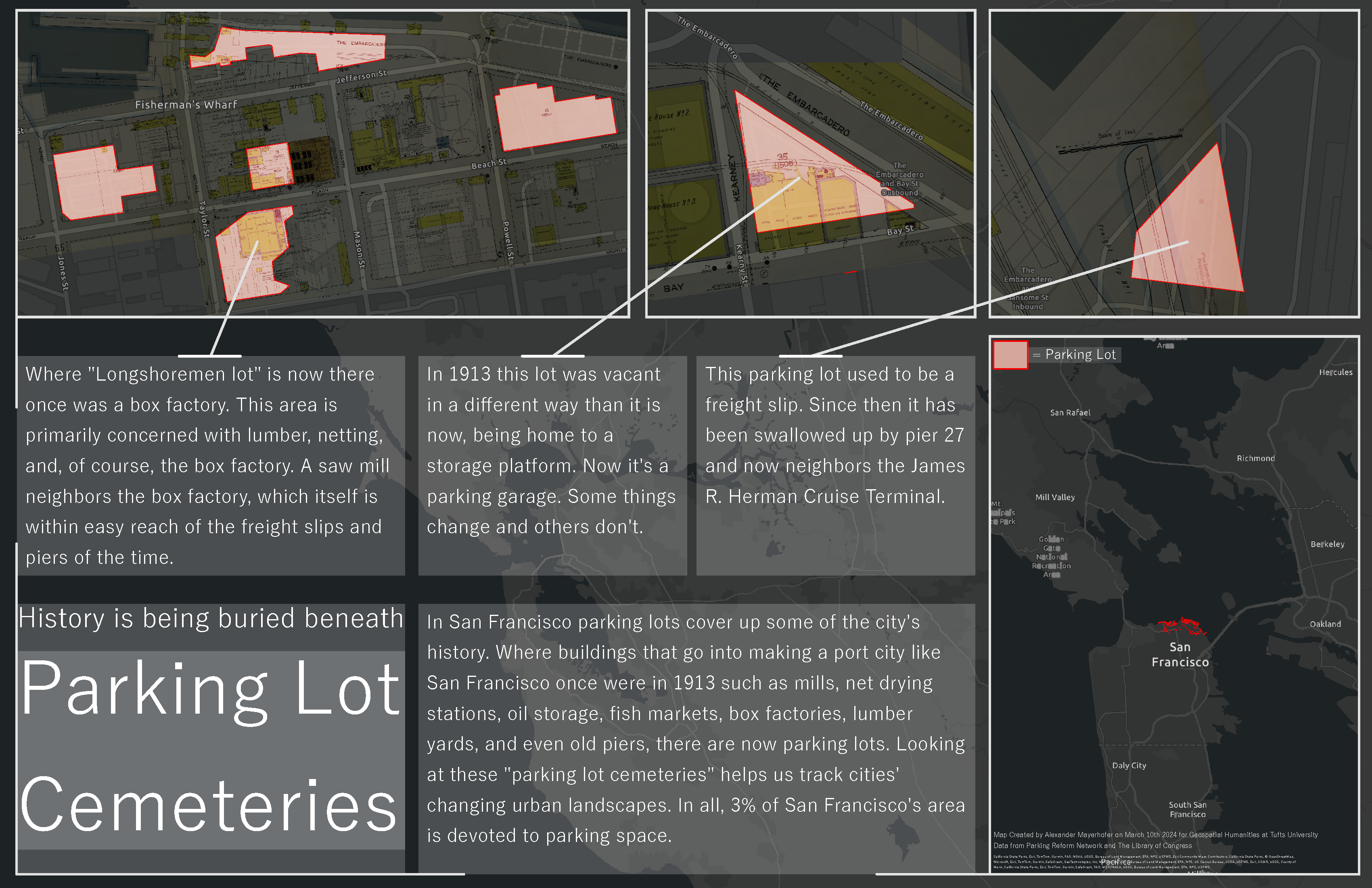 | Cemeteries | A mosaicked layer of four georeferenced Sanborn atlases, clipped to parking lot data |