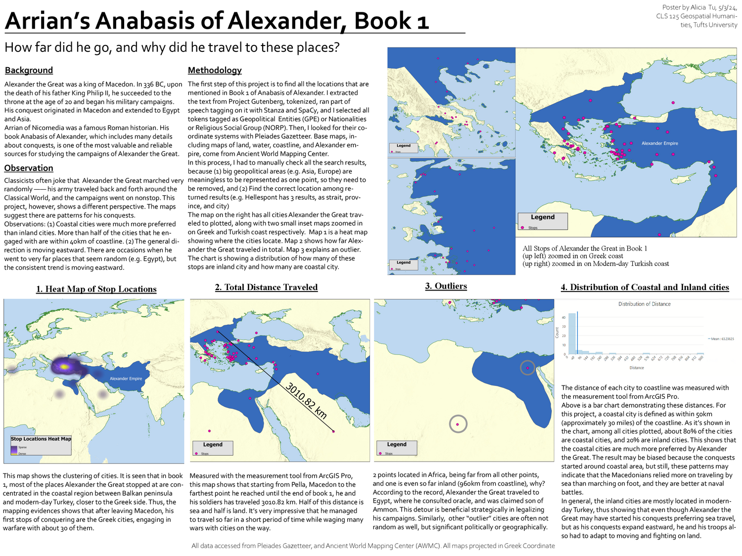 Your final project must, in some way, deal with geospatial humanities. The project need not be historical in nature, but it should have something to do with the humanities from a topical perspective (e.g., art, language, architecture, archaeology, literature, music, cinema, history, debate, classical texts, and so on).