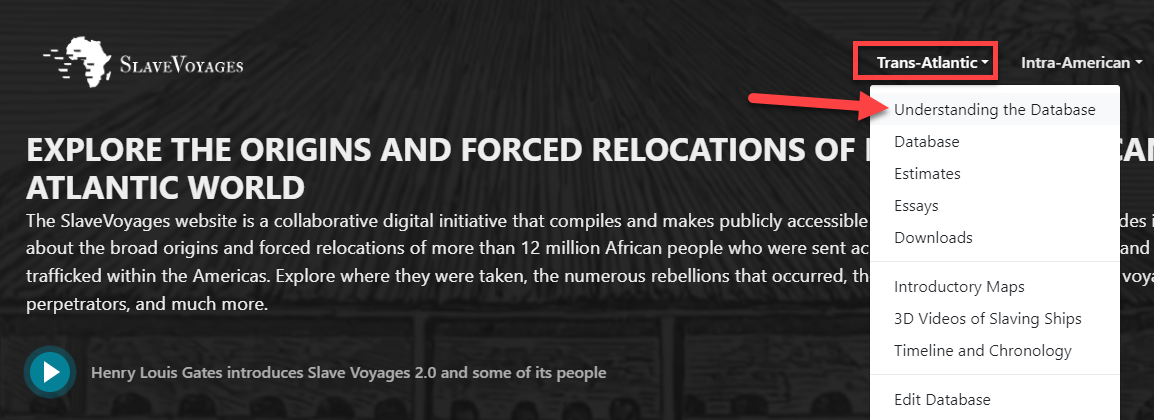 Click on the drop down for Trans-Atlantic and go to “Understanding the Database.”