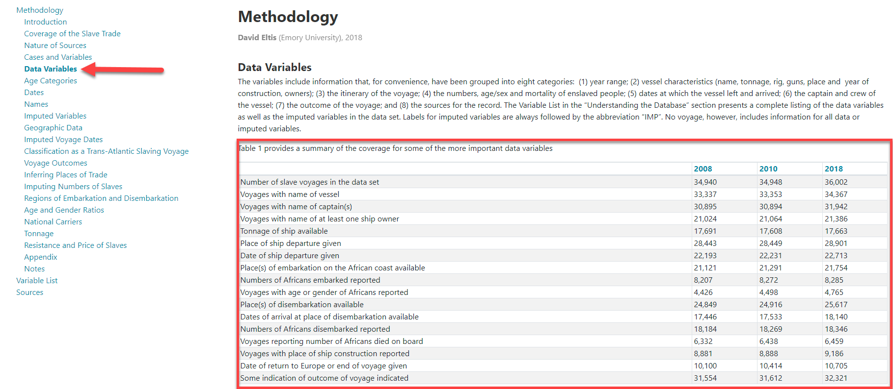 This activity will specifically focus on data from the Trans-Atlantic Slave Trade database. Therefore, it is important to read about the database on their website, along with any metadata that is provided.