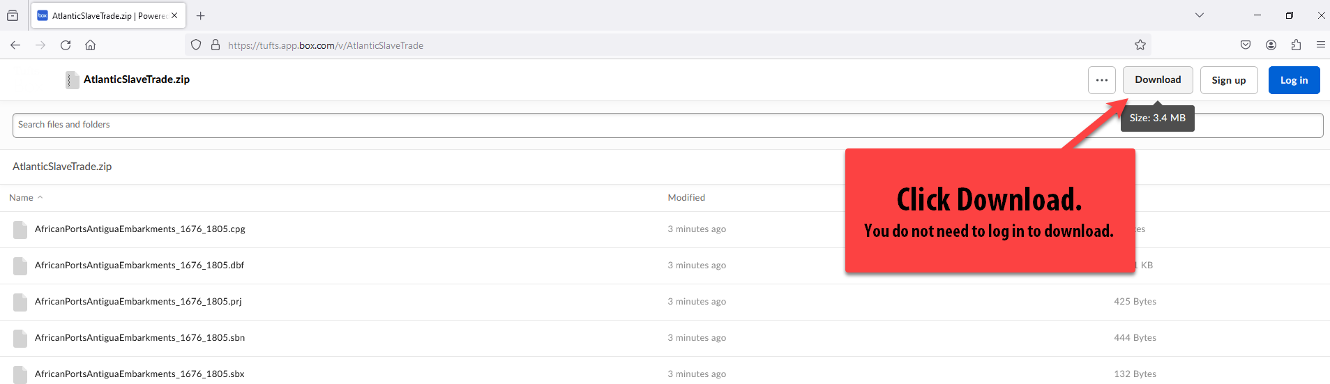 AtlanticSlaveTrade_TutorialData.zipby clicking on Download at the top right. Depending on the browser you are using, it might ask if you want to save, put it in the downloads bar at the bottom, or save it directly into your Downloads folder.