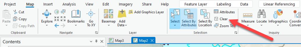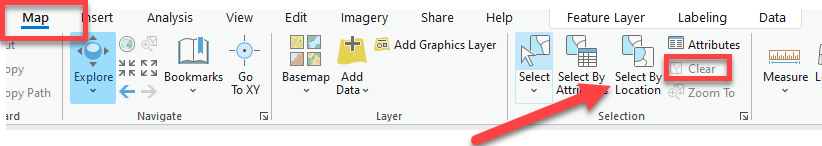Now, clear your selection by pressing on the Clear button on the top Map tab.
