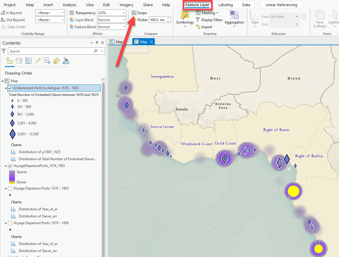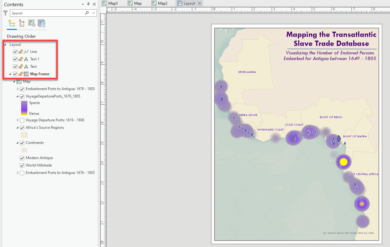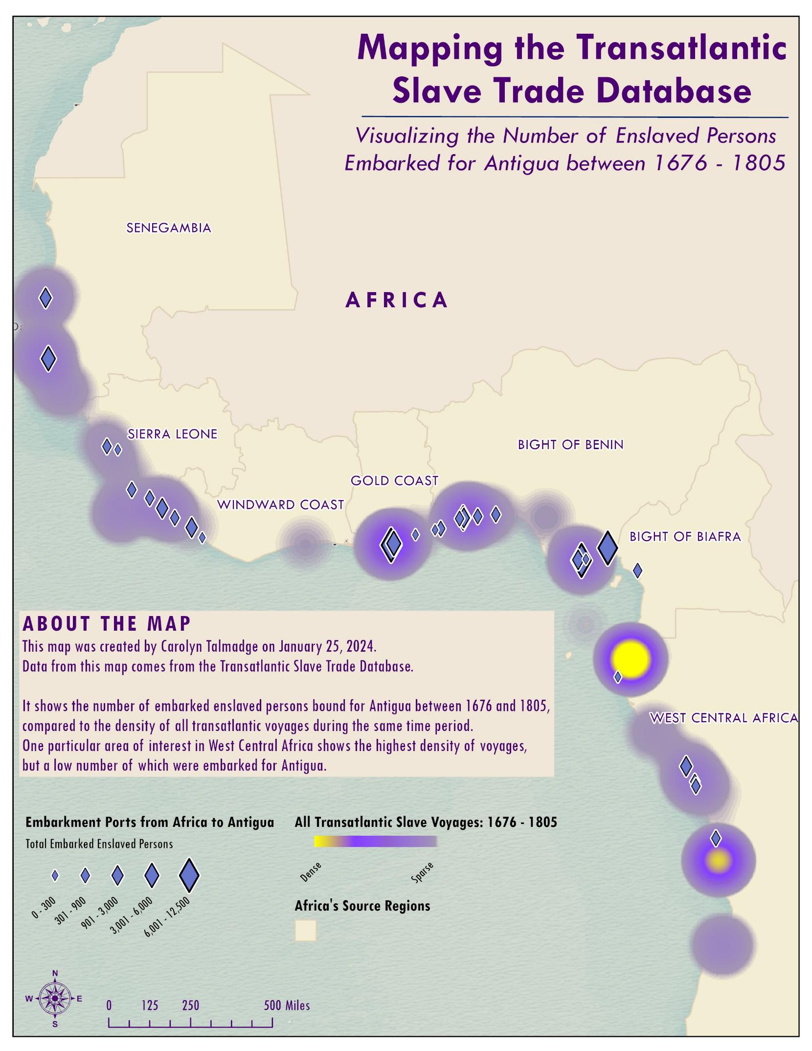 Obviously, this lab won’t give you the answers to those big questions. What it will do is introduce you to a major dataset that helps us bear witness to the Middle Passage, and lead you through the steps of using ArcGIS Pro to visualize and contextualize some of its geographies. Your final map will display the number of enslaved people transported from Africa to Antigua during between 1676 and 1805.