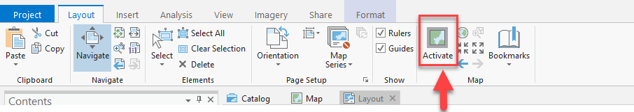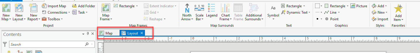 A new blank map will open, with your familiar interface components including the Contents pane on your left, the Catalog pane on your right, and the Map pane in the center