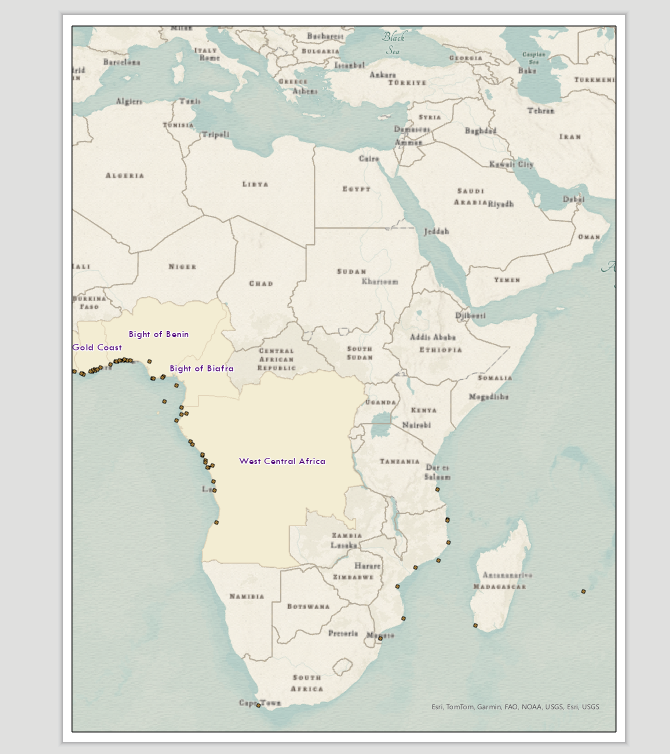 This lab walks you through working with and formatting spatial data. It draws on a large dataset about enslaved people’s voyages. It written by Carolyn Talmadge on January 3, 2024 for ArcGIS Pro 3.1.4 and updated by Ian Spangler on February 10, 2025. It is broken into five sections: