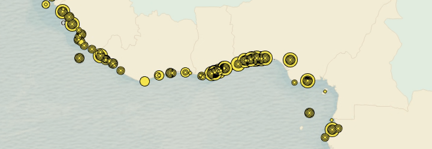 Since our first point dataset of ports is only showing enslaved persons embarked for Antigua between 1676 and 1805, let’s select all the voyages between 1676 and 1805. You should have 19,528 voyages selected.