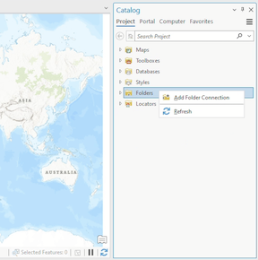 In ArcGIS Pro, navigate to the Catalog pane on the right-hand side of the screen. Refer to this guide if you need a refresher on the Pro interface. If you don’t see the Catalog pane, click on the View tab on the banner, then click Catalog Pane.