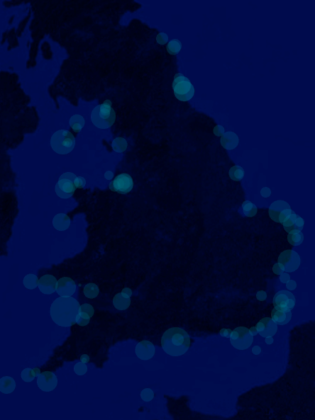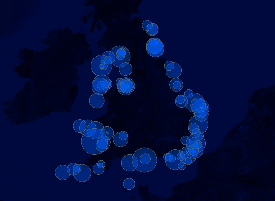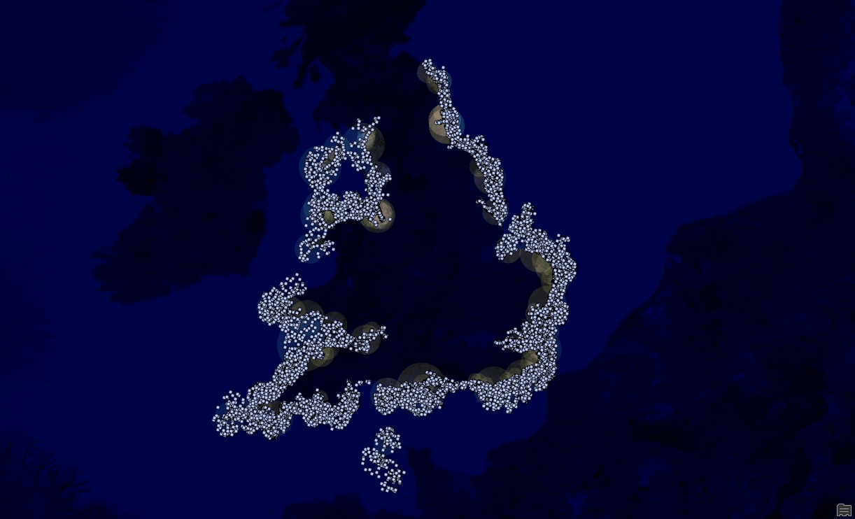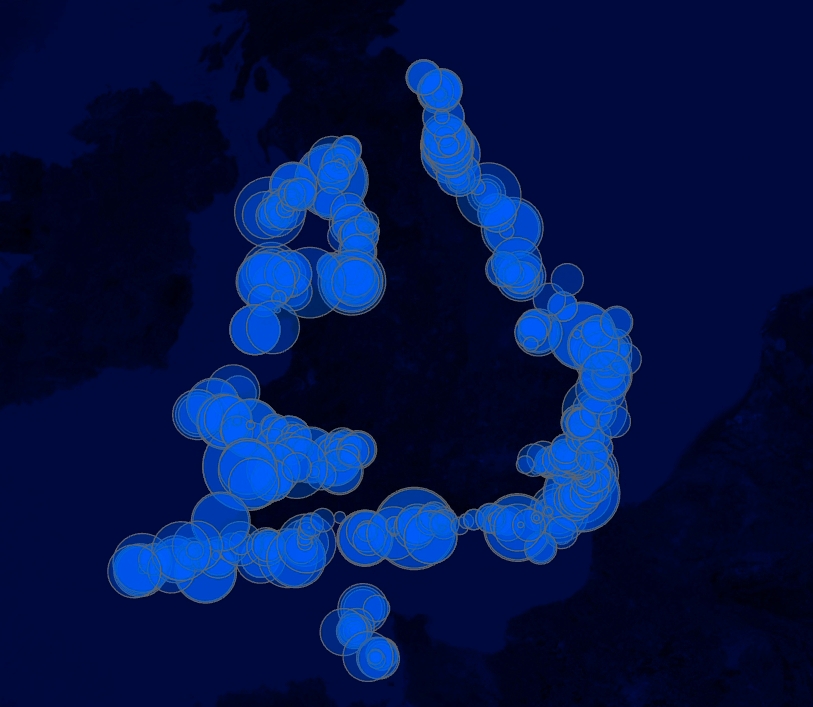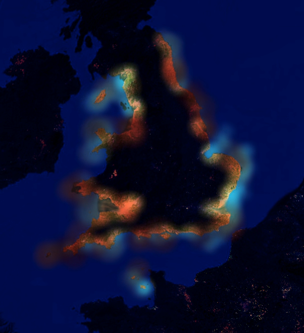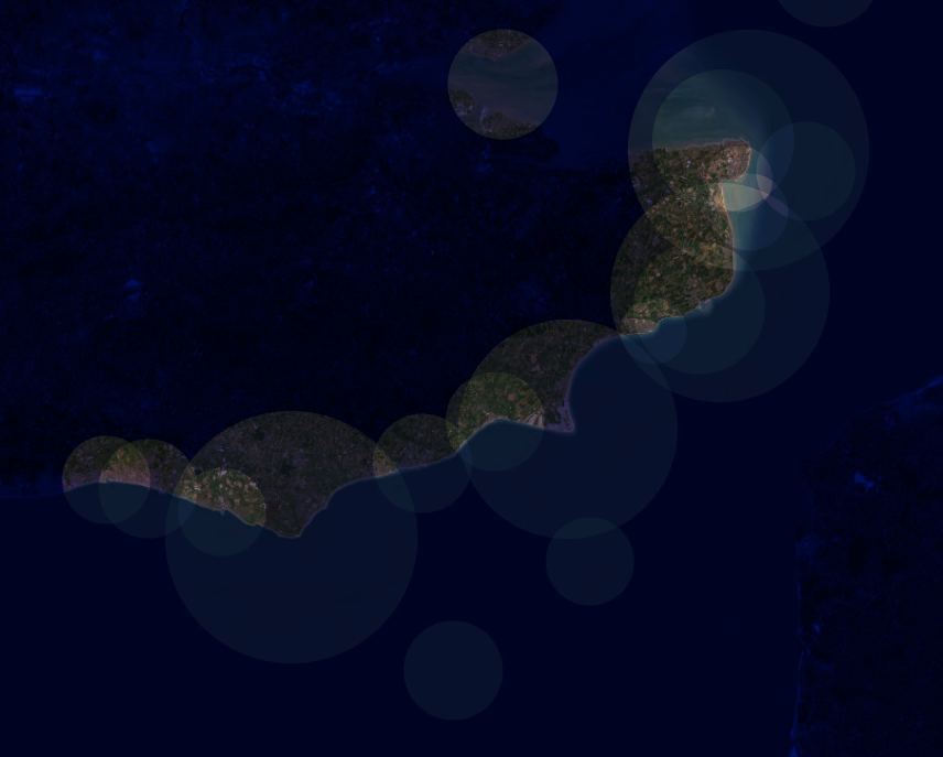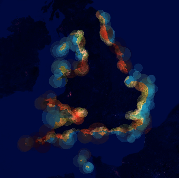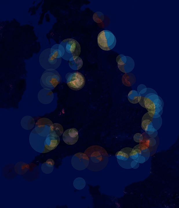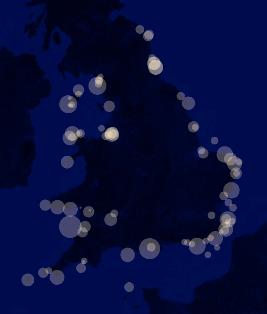 Now, you’ve got a proper map of lighthouses, with a lovely blur effect at the edges of the buffers that gives the viewer the sensation of natural light: