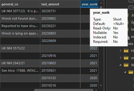 If you hover your cursor over the year_sunk header, you should see a popup that tells you what kind of data type it is.