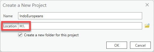 Open ArcGIS Pro and start a new Map. Name your project with a helpful name, such as IndoEuropeans and save it in your H: drive, or another location of your choice.