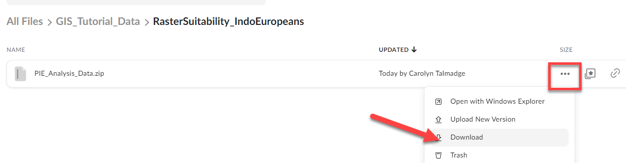 PIE_Analysis_Data.zip.Depending on the browser you are using, it might ask if you want to save, put it in the downloads bar at the bottom, or save it directly into your Downloads folder.