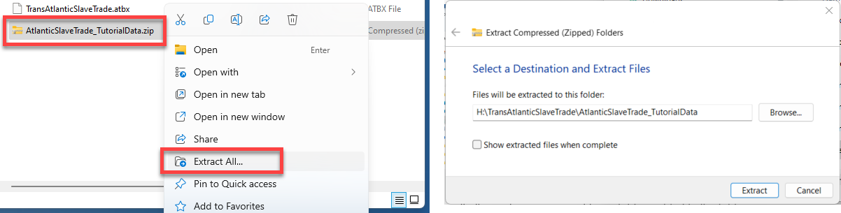 After pasting the zip drive in your workspace, right click on the zip file Extract All. Confirm the location where it is extracting is correct and press Extract.