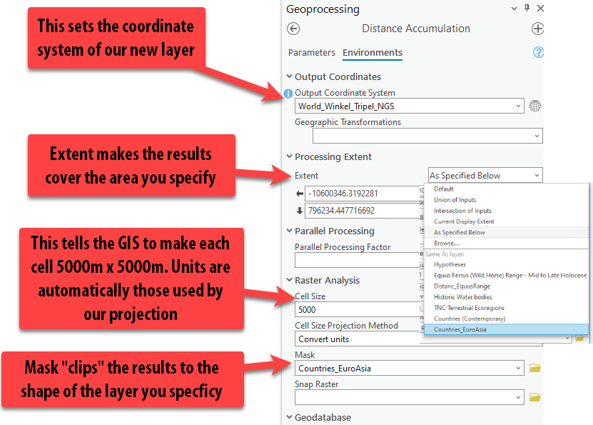 Countries_EuroAsiaonly has countries for Europe and northern Asia—we will tell the GIS to run tools only within this “extent” so that we don’t get any results in Africa or farther.