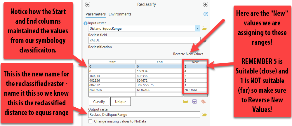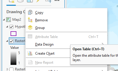 Right now, none of our data are rasters. That’s okay! Tools we run will create rasters, which we will “score” with the reclassify tool, and combine with raster calculator to determine the overall suitability for every cell within our area of interest.