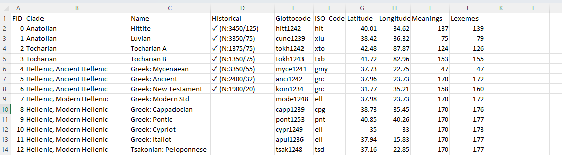 High Density of PIE Languages. The Indo-European language family includes more than 400 languages, which are spoken by a significant portion of the world’s population (Heggarty et al., 2023; Hammarström, 2022). All derive from the same source language: Proto-Indo-European. This analysis will examine 8 ancient languages that were directly ancestral to PIE. Linguistic data is downloaded from Heggarty et al., 2023. You can explore the data with an interactive map showing the locations of these languages**.