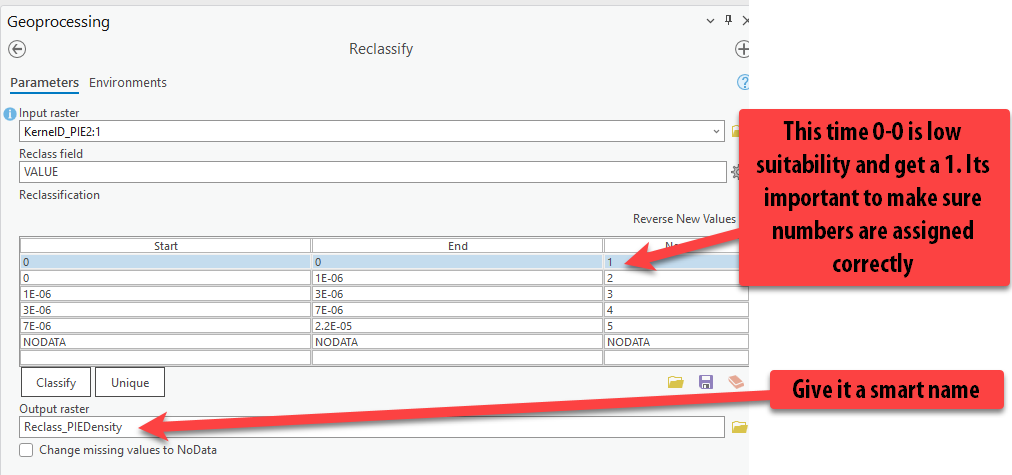 Now, under “Input Raster,” this is where we want to add one of our raster calculators. First, we will do it with the Unweighted Raster Calculator results. Pull that layer in or select it from the drop down.