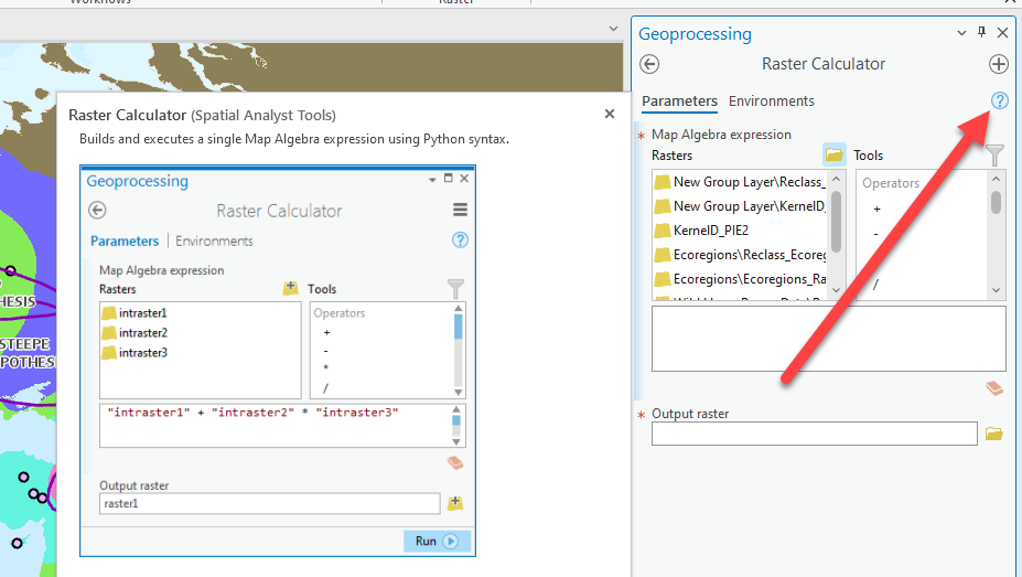 Using the raster buttons on the left and the tool buttons on the right, let’s build this equation. You will have to type in the parenthesis