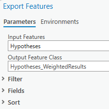 Remember, a join isn’t permanent until you Export Features and save it as it’s own feature class. Right-click on hypotheses Data Export Features (this is the “Save As” of data).